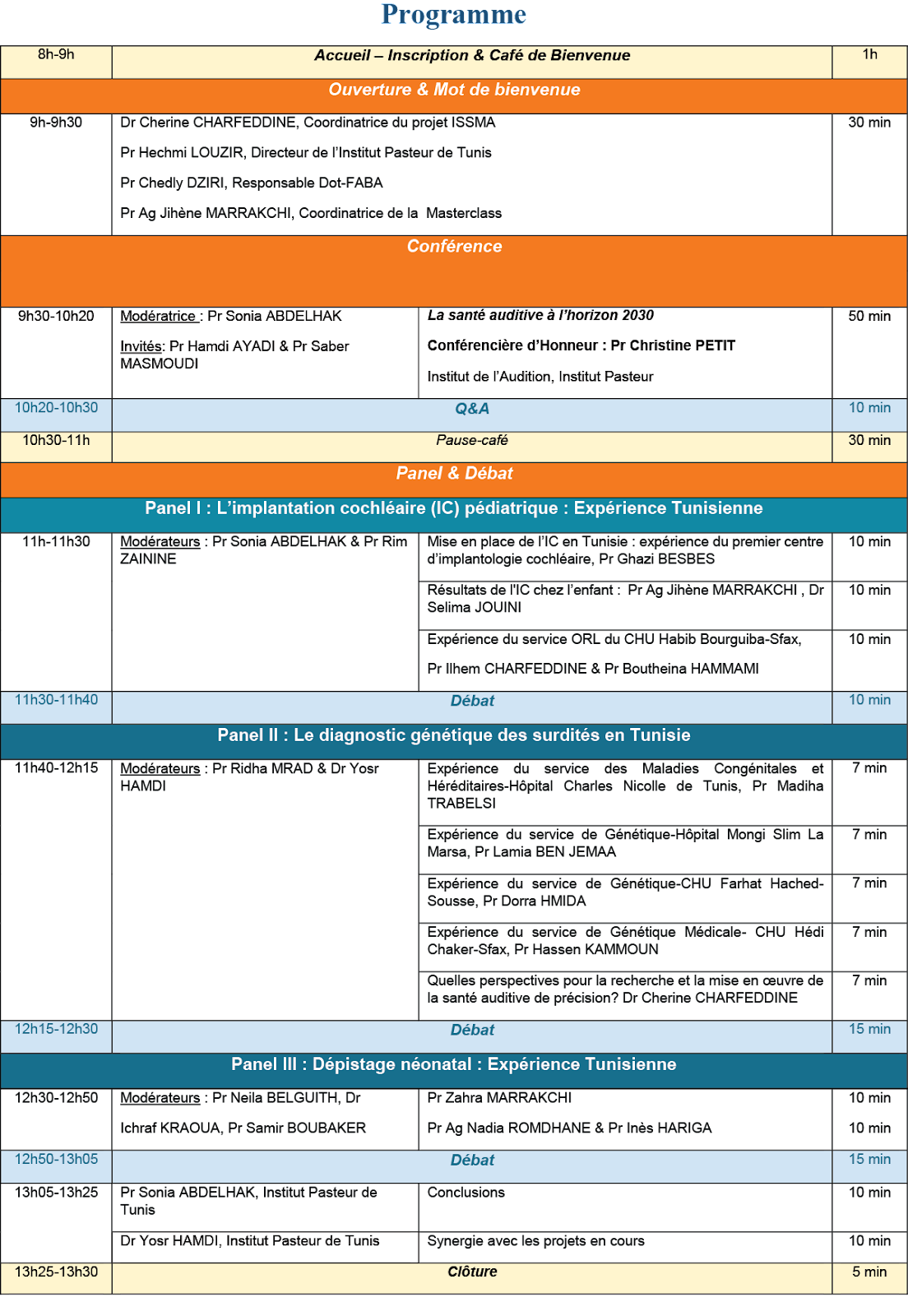 Cet événement réunira des acteurs impliqués dans le diagnostic clinique et génétique des surdités à l’échelle nationale. Considérant les avancées notoires en génomique, en particulier, le développement des technologies de séquençage de nouvelles générations qui ont révolutionné le diagnostic de précision des surdités, parmi les questions débattues figure l’interrogation centrale : Où en sommes-nous dans la mise en œuvre d’une santé auditive de précision dans le système de santé tunisien ?