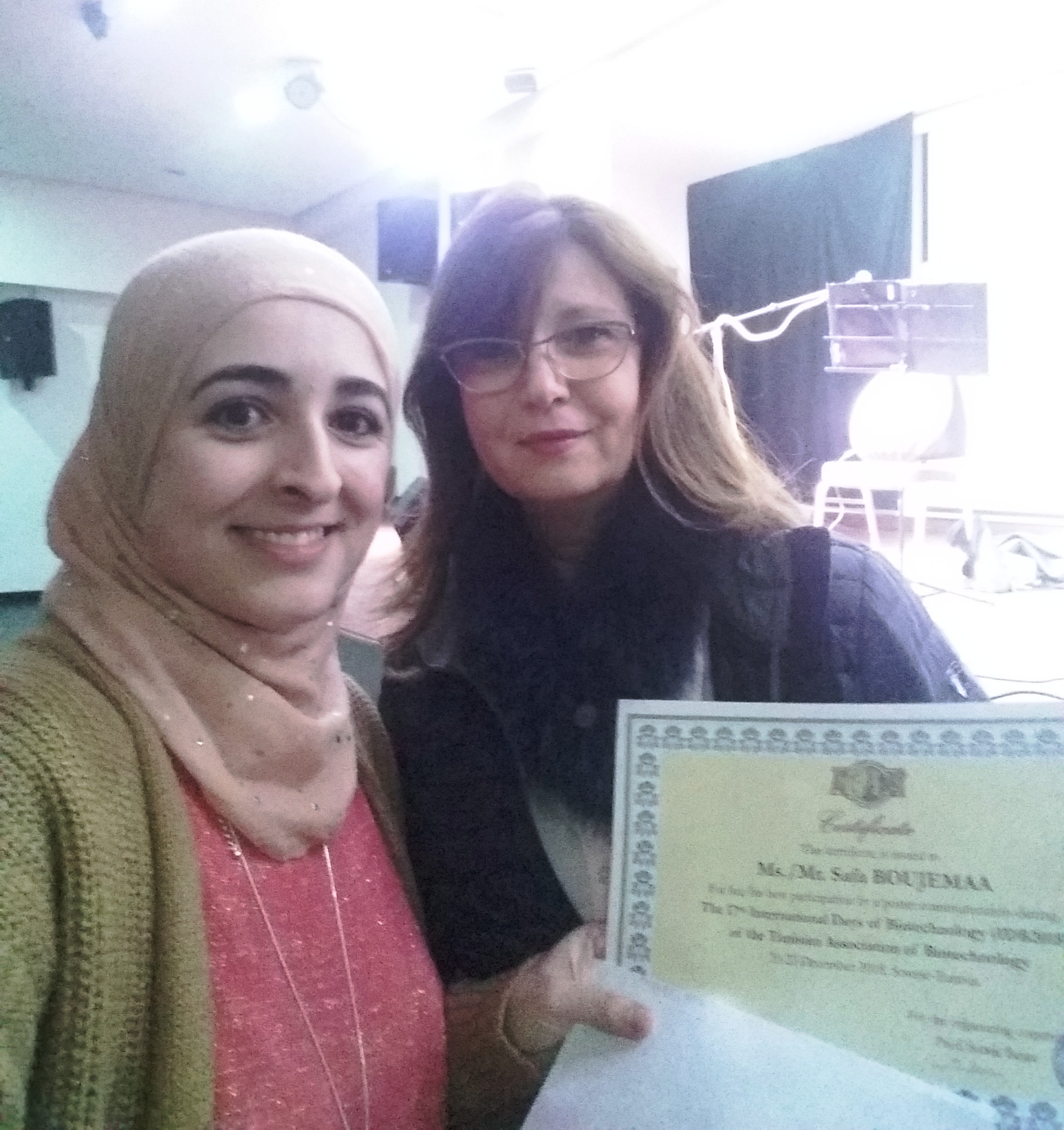 Safa Boujemaa étudiante en thèse sous la direction de Boutheina Mardassi a obtenu le prix du meilleur poster lors des Journées internationales de biotechnologie qui se sont déroulées du 20 au 23 décembre 2018 à Sousse.