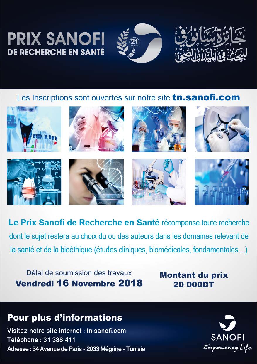 Le Prix Sanofi de la Recherche en Santé récompense toute recherche dont le sujet restera au choix du ou des auteurs dans les domaines relevant de la santé et de la bioéthique (études cliniques, bomédicales, fondamentales...)