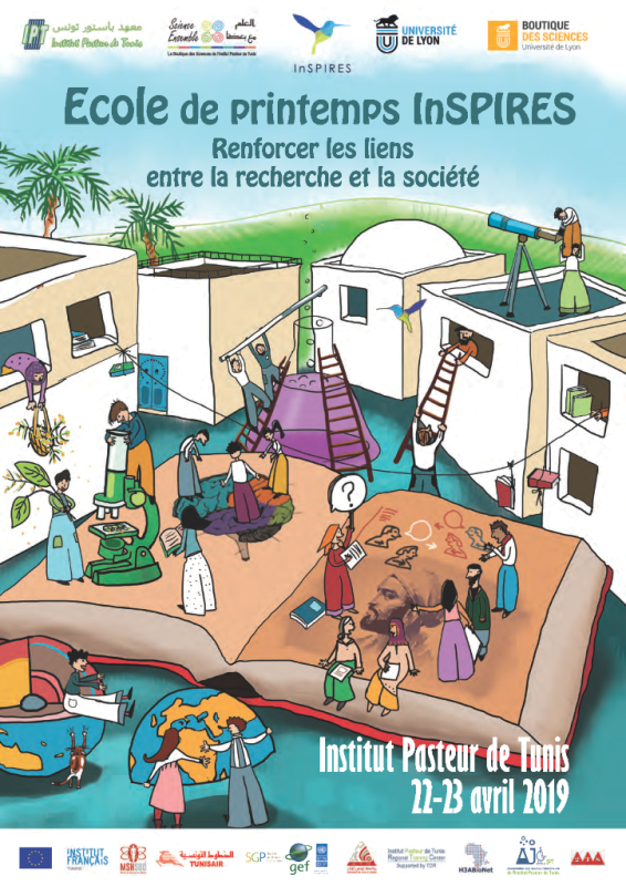 L'Institut Pasteur de Tunis (IPT) et la Direction Culture, Science et Société de l'Université de Lyon en tant que partenaires du consortium du projet H2020 InSPIRES organisent une école de printemps autour des Boutiques des Sciences (BdS) les 22 et 23 avril 2019 à l'IPT.