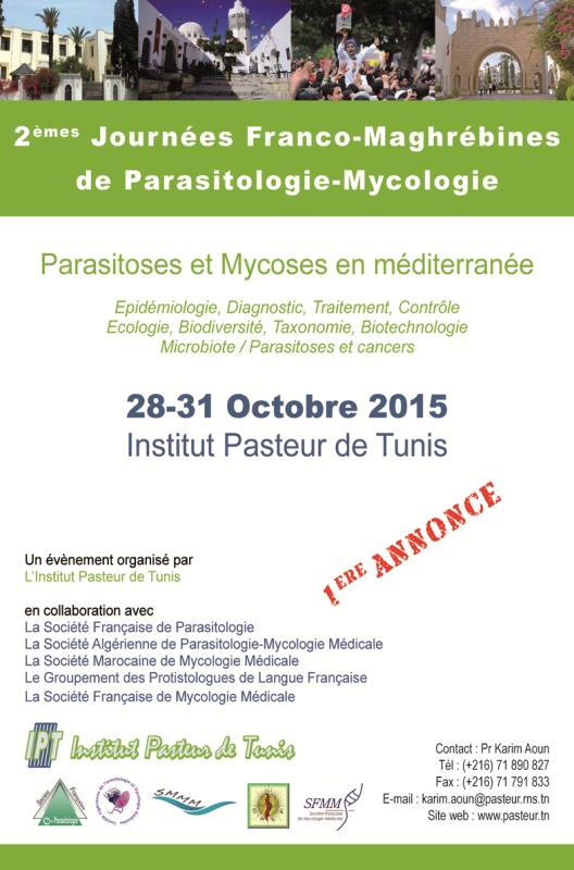 Du 2 au 4 avril 2015, l'Institut Pasteur de Tunis accueillera un colloque international intitulé « La leishmaniose viscérale au Maghreb : Du Diagnostic