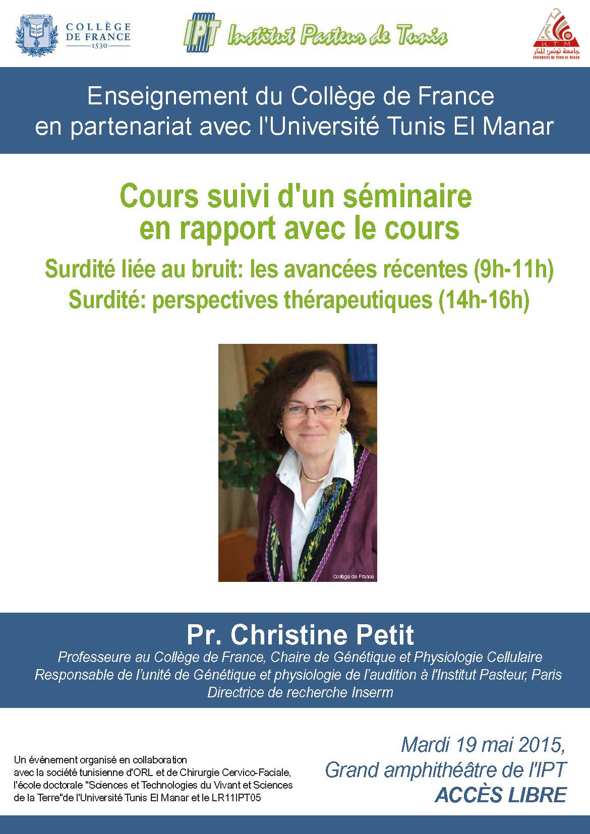 Mardi 19 mai 2015, dans le grand amphithéâtre de l'IPT, le Pr Christine Petit,