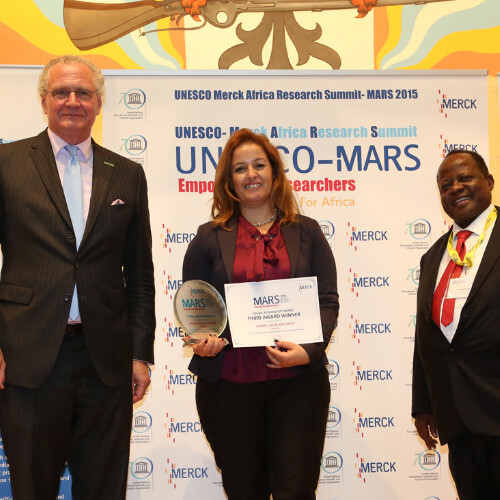 Dr Hanene Chelbi, biolgiste adjoint au laboratoire de Parasitologie Médicale Biotechnologies et Biomolécules a obtenu le 3ème prix du meilleur chercheur africain délivré par l'UNESCO MARS (Merck Africa Research Summit) à l'occasion de l'UNESO Merck Africa Research Summit, organisé à Genève les 19 et 20 octobre 2015.