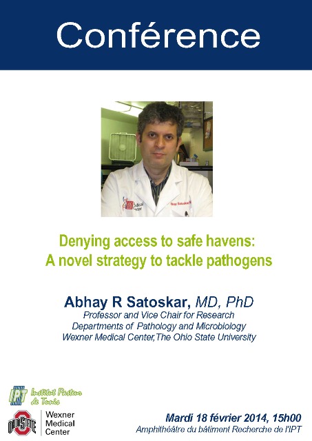 Le mardi 18 février 2014, à 15h00, dans l’amphithéâtre du bâtiment Recherche, le Pr Abhay R Satoskar, (Professor and Vice Chair for Research, Departments of Pathology and Microbiology Wexner Medical Center,
