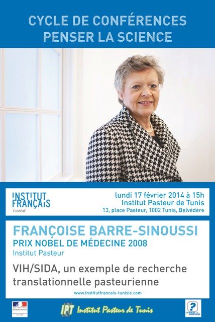Lundi 17 février 2014 à 15h00, dans le grand amphithéâtre de l'Institut Pasteur de Tunis, Françoise Barré-Sinoussi, chef de l'Unité de régulation des infections