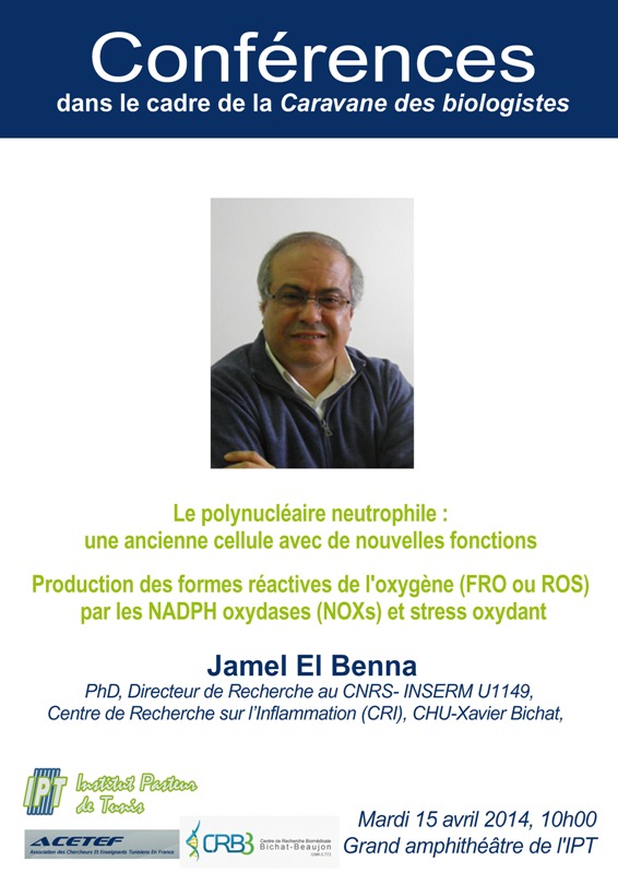 Mardi 15 avril à 10h00, dans le grand amphithéâtre de l'IPT, Jamel El Benna Directeur de Recherche au CNRS- INSERM U1149,