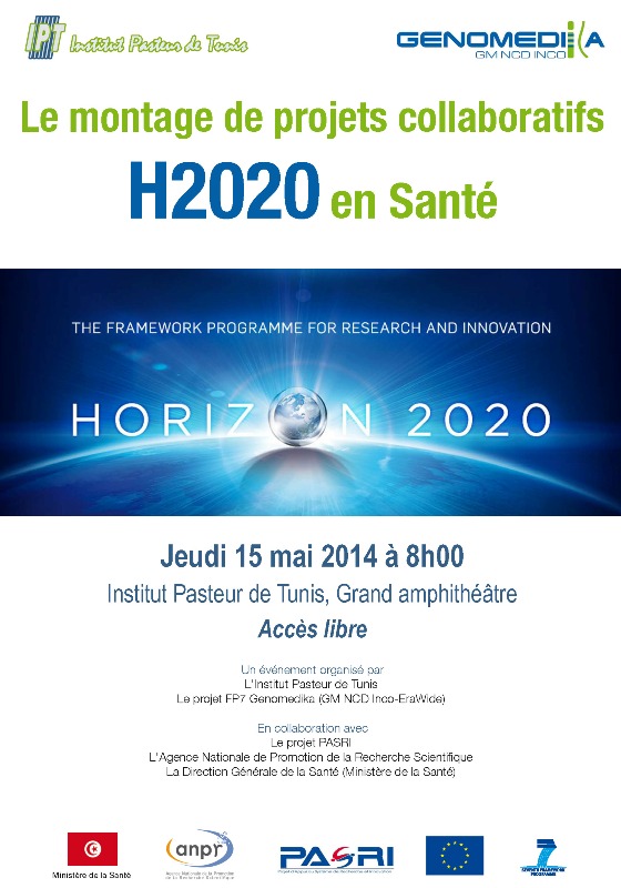 L'Institut Pasteur de Tunis accueillera le jeudi 15 mai 2014 à 8h00 dans le grand amphithéâtre,