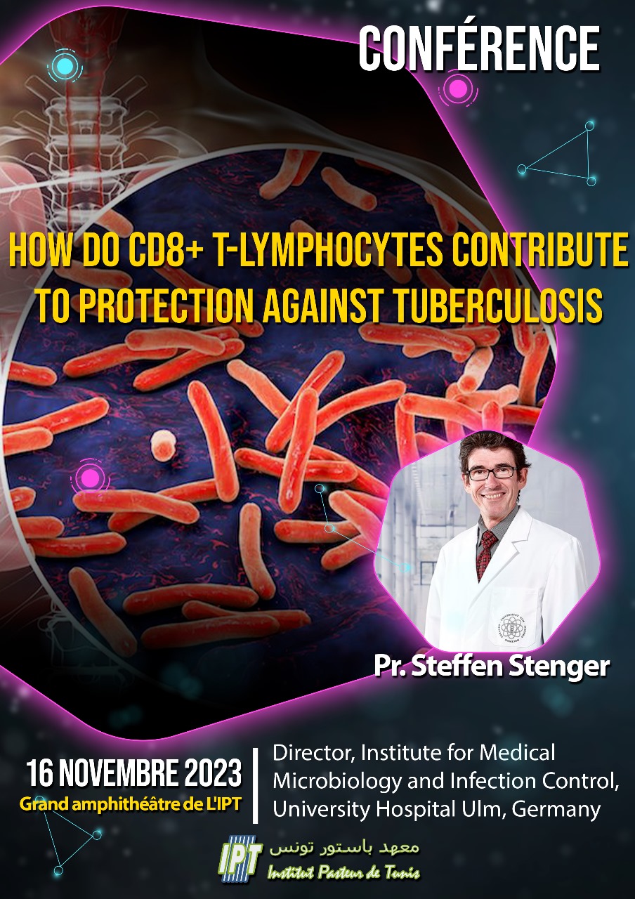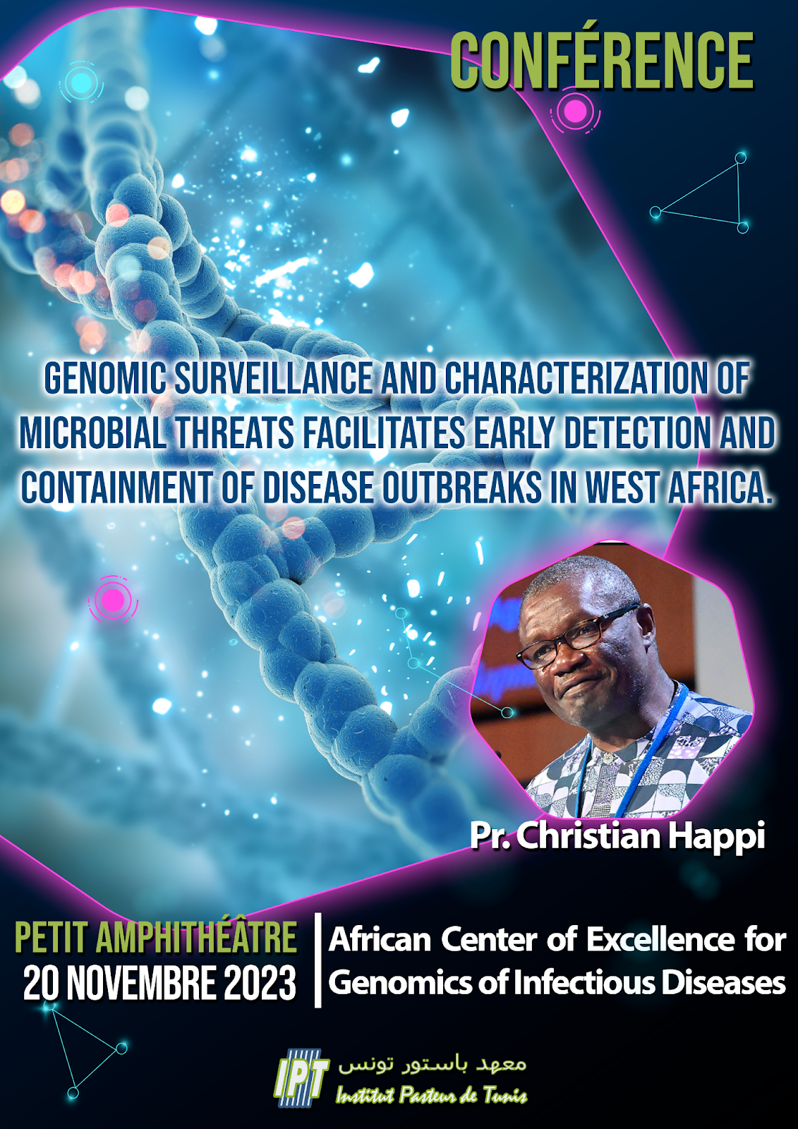 Une conférence aura lieu ce jeudi 16 novembre 2023 à 11h00 dans le grand amphithéâtre, Bâtiment Amor Chedly, Institut Pasteur de Tunis.