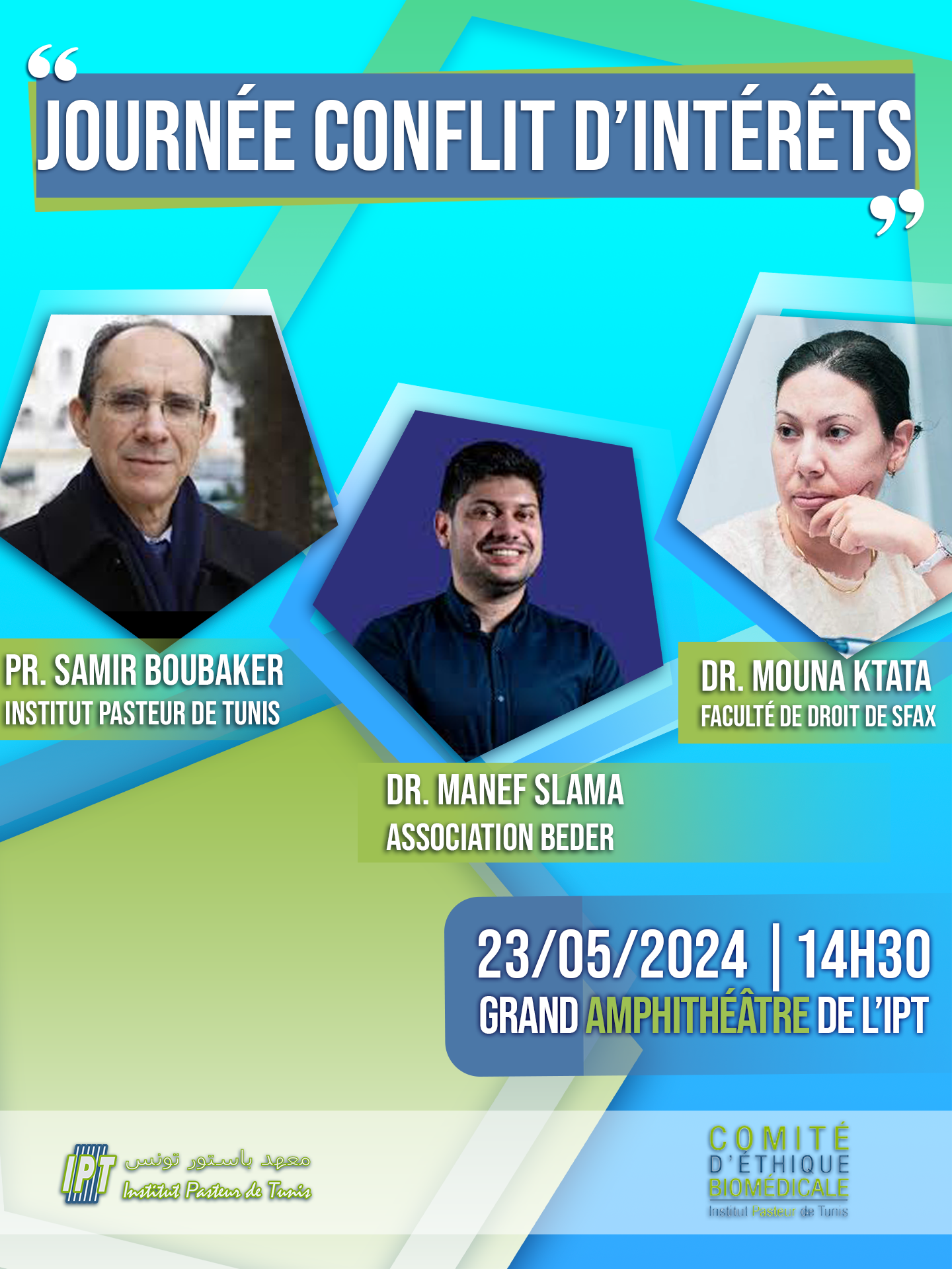Le Comité d’Éthique Biomédicale de l’Institut Pasteur de Tunis, en partenariat avec l’Association BEDER, organise une après-midi d’information sur le thème du Conflit d’Intérêts.