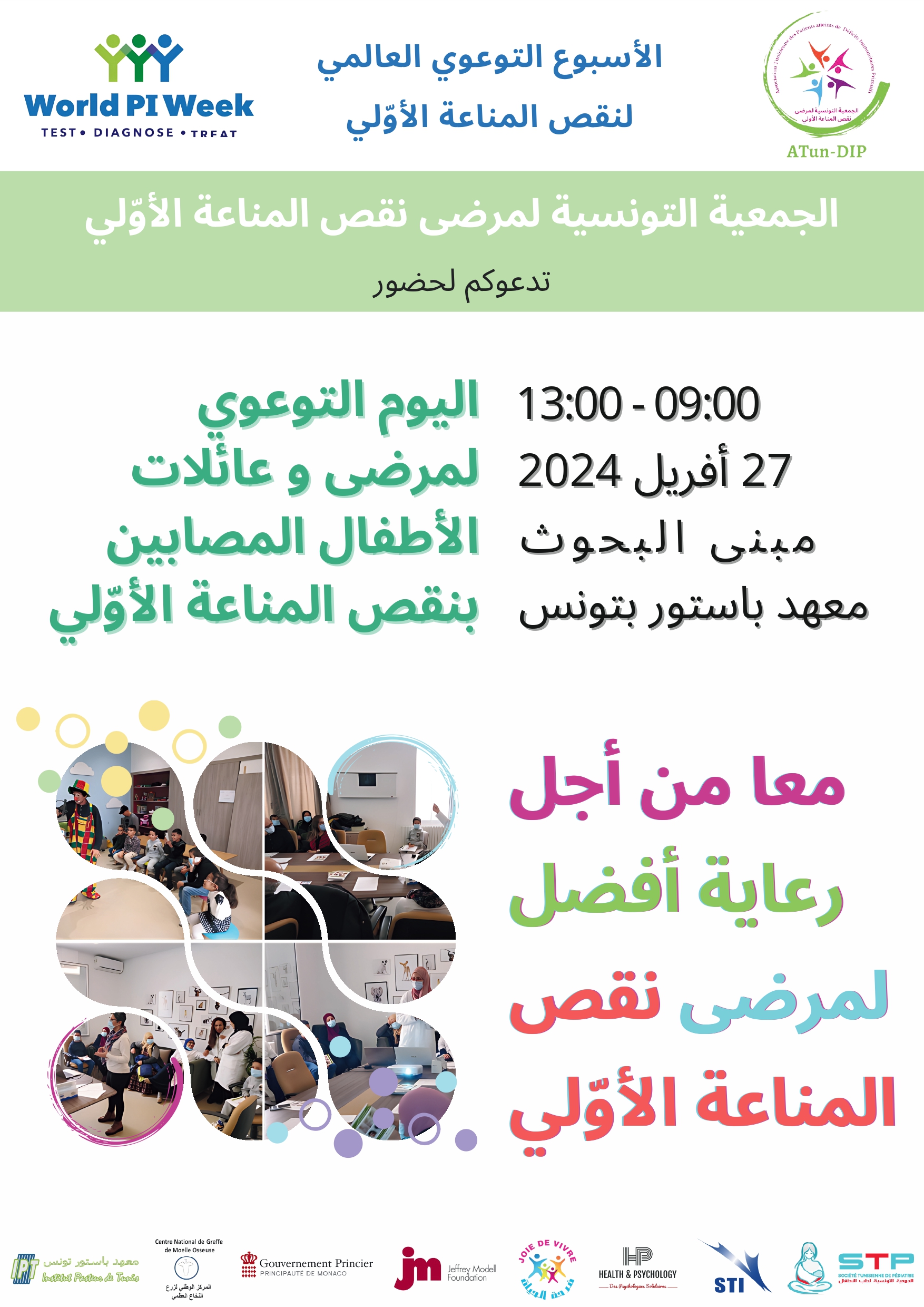 À l'occasion de la Semaine Mondiale des Déficits Immunitaires Primitifs, l'association ATun-DIP, en collaboration avec l'Institut Pasteur de Tunis et d'autres partenaires, organise le 27 avril une Journée de Sensibilisation des Patients et des Parents d'Enfants Atteints de Déficits Immunitaires Primitifs à l'Institut Pasteur de Tunis (Bâtiment de Recherche).