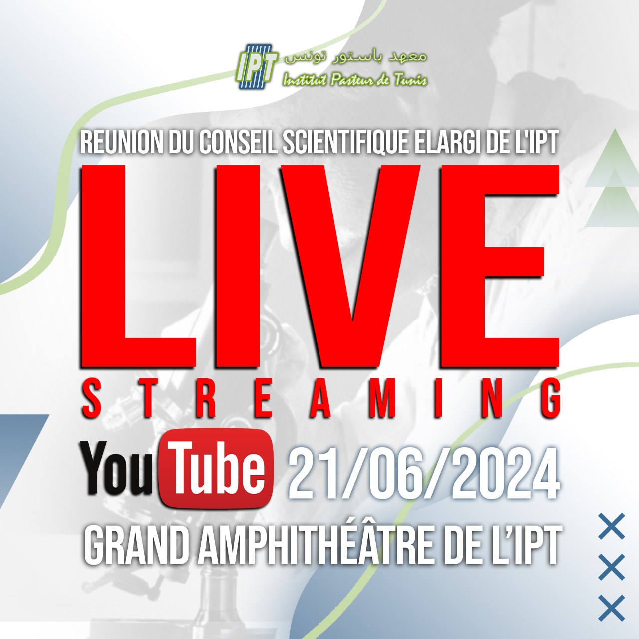 L'Institut Pasteur de Tunis organise la réunion annuelle du conseil scientifique élargi , le vendredi 21 juin 2024, au grand amphithéâtre de 'lIPT.